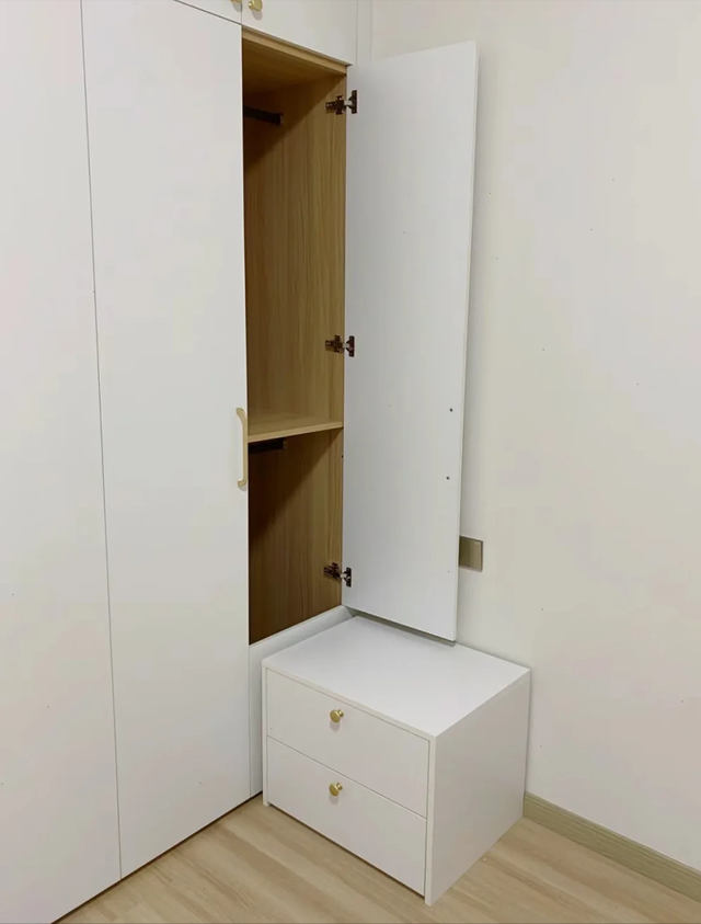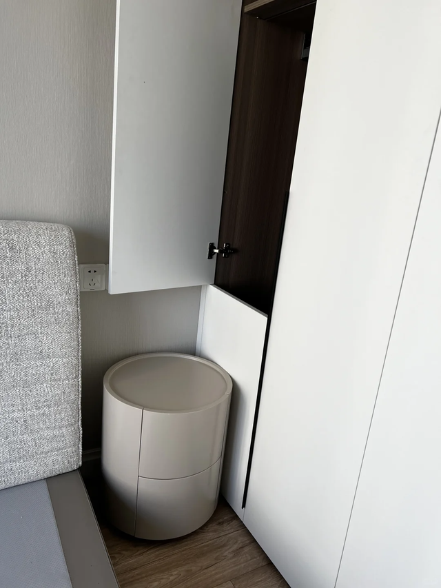 实际操作中,只要尺寸出现些许误差,柜子就很难正常使用,要么柜门无法打开,要么打开后会撞到床头柜。