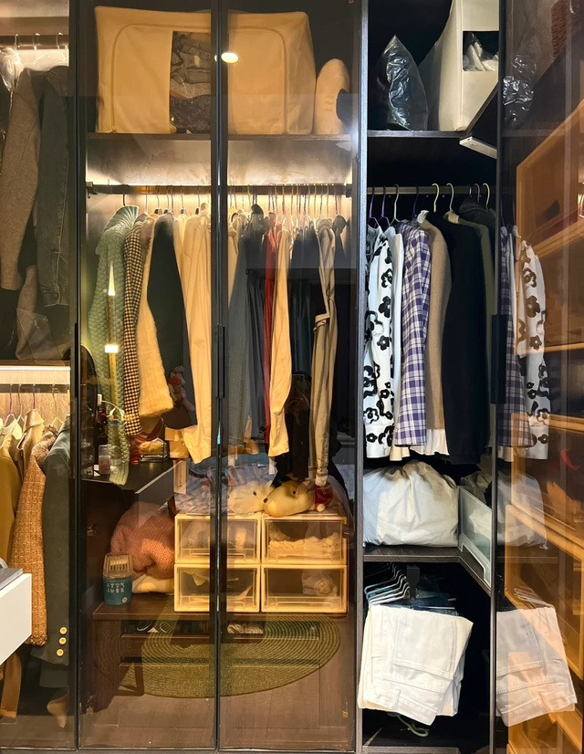 而且,玻璃柜门会将衣柜内的衣物完全暴露出来,如果衣物叠放不整齐或颜色搭配不协调,就会显得杂乱无章。